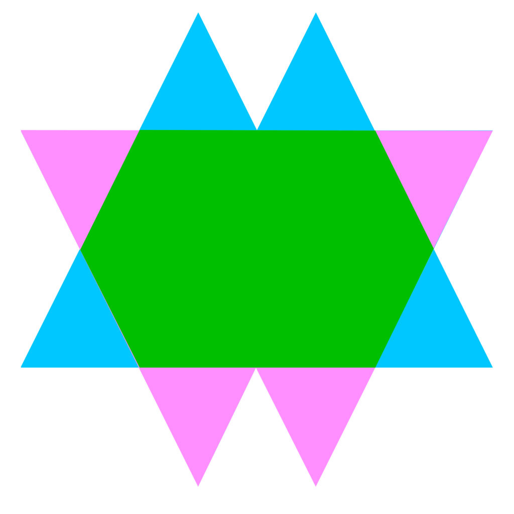 Das Hexagramm ist ein sehr altes Symbol. das vor allem im tantrischen Hinduismus und Buddhismus nachgewiesen wurde und später um 700 nach Christus in der jüdischen Tradition der Kabbala als „Schild Davids“ auftaucht und schliesslich zum Symbol des Judentums wurde. Unter dem Christentum diente das Hexagramm als gnostisches Symbol der Vereinigung von Christi und Sophia, das heisst als Vergöttlichung des Menschen. Schriftliche Hinweise auf das Hexagramms lassen sich auf 700 bis 800 v. Chr. datieren. Es setzt sich aus zwei Varianten des vielleicht ältesten menschlichen Symbols, des Dreiecks, zusammen.